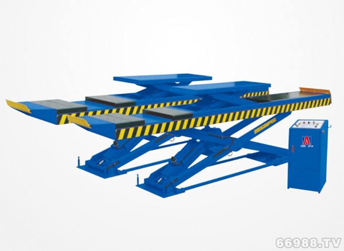 2. 电动液压双缸驱动 3. 合资液压泵站 4. 前轮转交盘位置可调整,适合多种车型 5. 气动机械锁装置,操作方便,安全可靠,适用于汽车底盘维修 6. 24V控制系统,24V限位开关装置,确保操作安全,放心使用 7. 外部配有拖线开关,可远距离控制 8. 后侧滑板、前轮定位槽与工作台面高度一致 9. 带侧滑和二次举升小车,适用于轮胎更换,四轮定位和车辆维修保养等