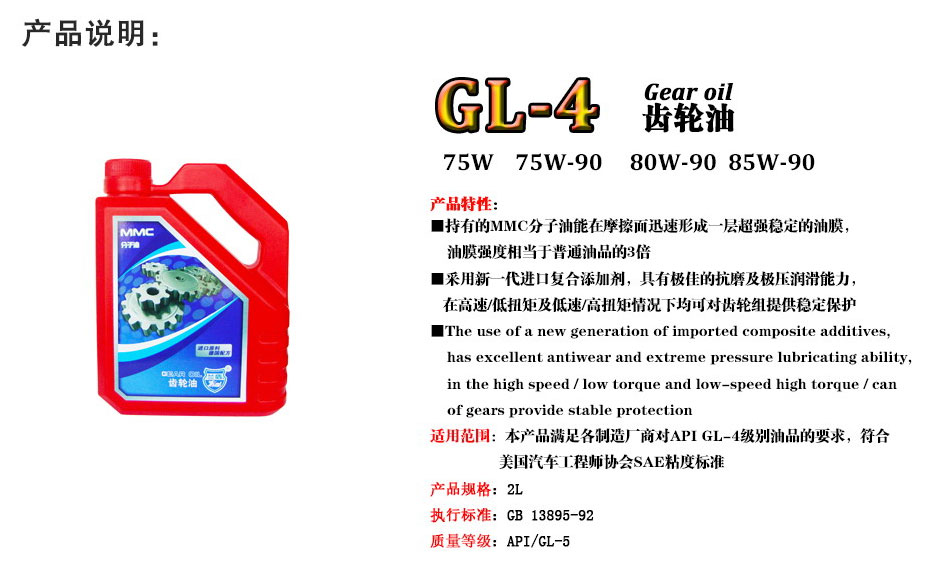 主要特点: 兰盾兰擎GL-4 齿轮油