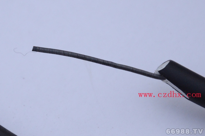 线体黑色外皮是热缩弹性体制成,内芯白色的是三元乙丙胶,该线体带有缠绕丝,缠绕丝是镍络金属丝,被镍络丝缠绕的最中间的芯是纤维芯,