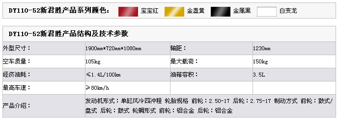 主要特点: 北方易初大阳DY110-52新君胜摩托车