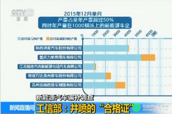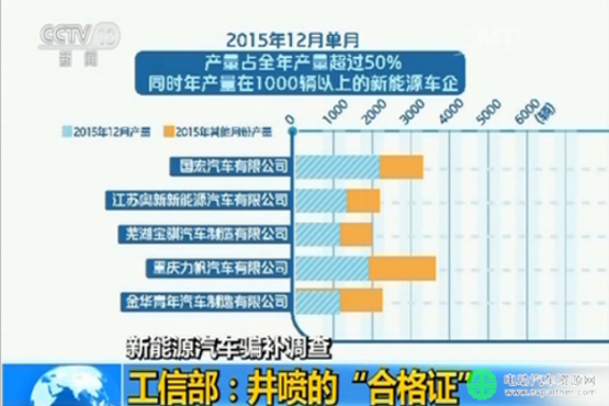 终究有哪些公司触及骗补,行径有多恶劣?央视在曝光姑苏吉姆西客车制作有限公司时,疑似现已发布了除此以外的9家公司,分别是陕西通家轿车股份有限公司、重庆力帆乘用车有限公司、江苏陆本地舟新动力电动轿车有限公司、奇瑞万达贵州客车股份有限公司、国宏轿车有限公司、江苏奥新新动力轿车有限公司、芜湖宝骐轿车制作有限公司、重庆力帆汽 车有限公司以及金华青年轿车制作有限公司。这些车企存在的一个共同点是,从工信部供给的合格证数量显现,其2015年12月单月的产量均已超越全年产量的 50%,且年产量均在1000辆以上。以此来看,被央视点过名的这十家车企嫌疑最大。他们赶在2013—2015年新动力轿车补助方针的最后机遇,狠狠地 捞上一笔。