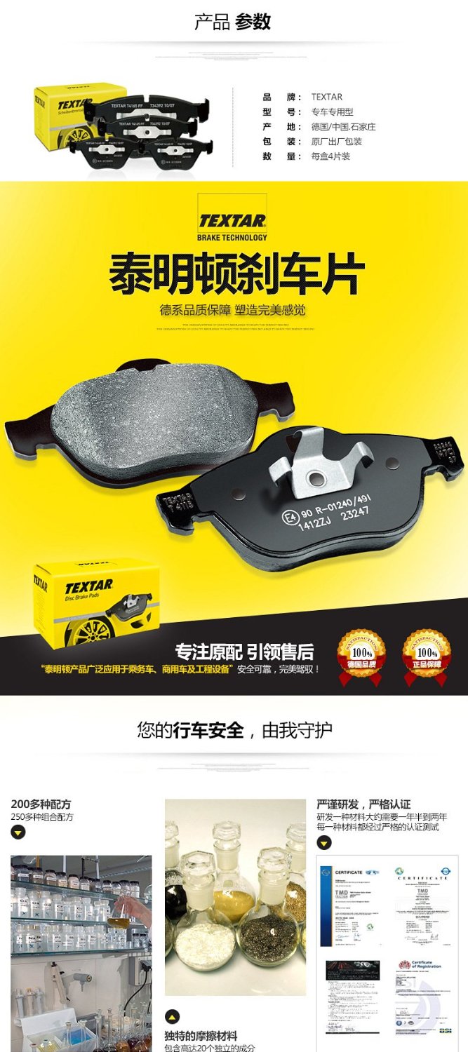 • 德国TEXTAR泰明顿刹车片前片一套 适用于丰田花冠前