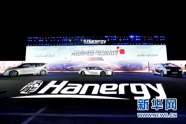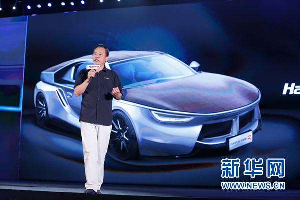 图为 汉能全太阳能动力轿车露脸主舞台