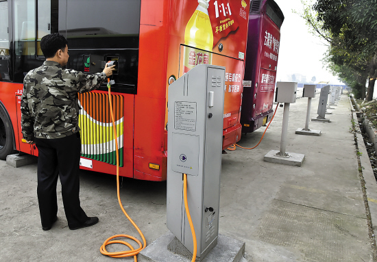 据新穗巴士常务副总经理黎志坚介绍,潭村公交车场充电站的建造规划为200个充电桩,现在已建成约30个混合动力型充电桩,待建170个纯电力型充电桩。与传统柴油、汽油公交车比较,一辆纯电力公交车的运用成本可节约约一半,以200台纯电动公交车测算,每年可削减二氧化碳排放1.4万吨。