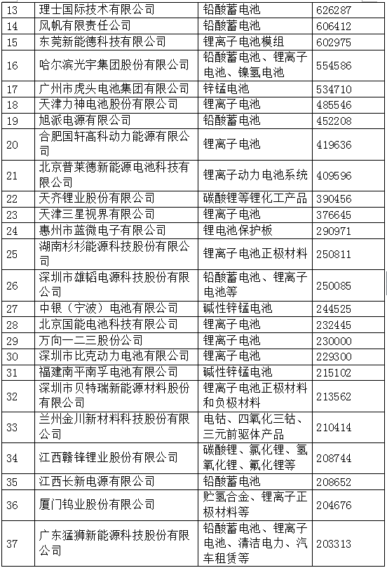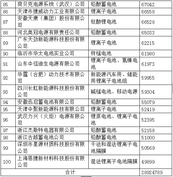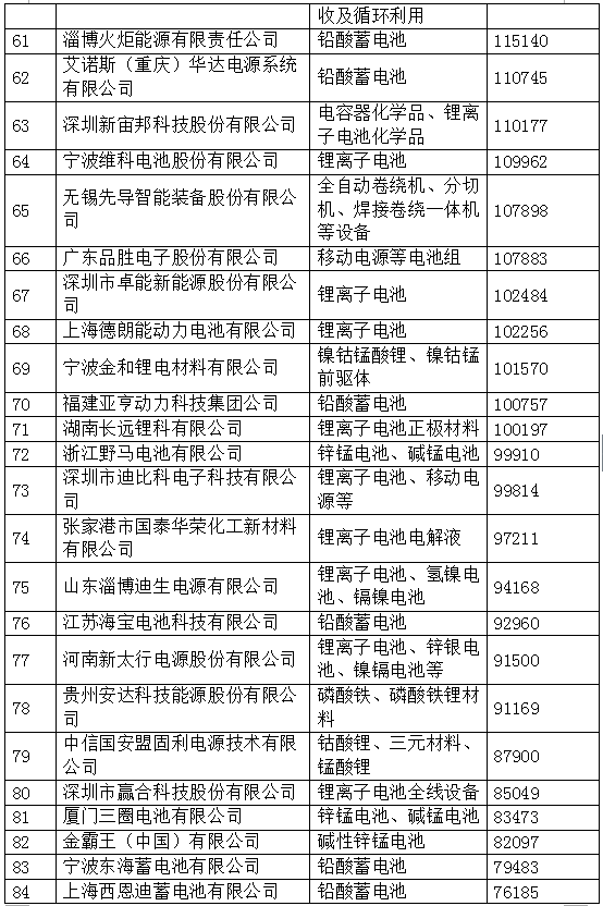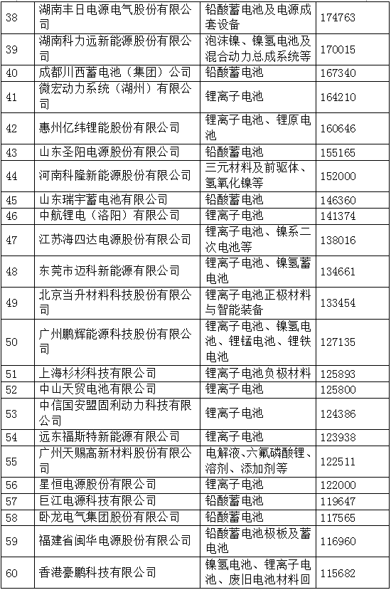 2016年度中国电池行业百强企业共实现销售收入超过2892.48亿元,同比2015年的2170.9亿元增长33.2%。新一届百强中铅酸蓄电池企业30家,销售收入975.77亿元,占比33.7%;锂离子电池企业38家,销售收入1035.15亿元,占比35.7%;锂离子电池模组企业6家,销售收入261.55亿元,占比9%;锌锰/碱锰电池企业8家,销售收入138.11亿元,占比4.7%;镍氢/镍镉电池企业9家,销售收入26.9亿元,占比0.9%;锂一次电池企业3家,销售收入13.28亿元,占比0.46%;材料企业18家,销售收入270.12亿元,占比9.3%;设备企业2家,销售收入19.29亿元,占比0.6%。本届百强企业中销售收入超过100亿元的有5家,超过50亿元的有17家;超过20亿元的有37家。入围企业最低销售收入4.98亿元,比上届提高8400万元。